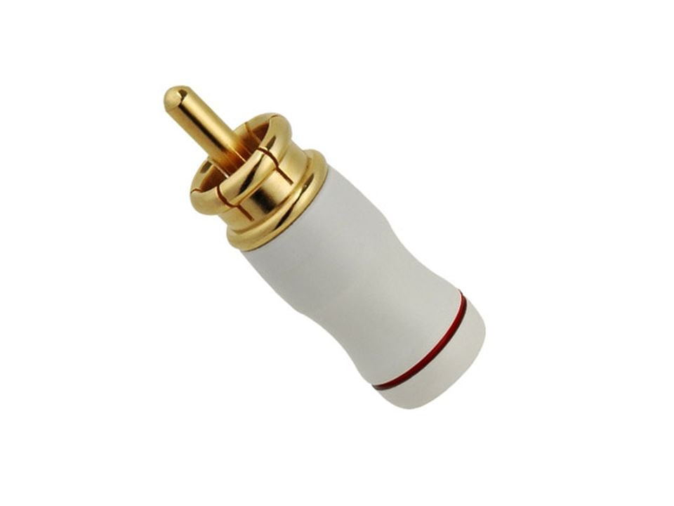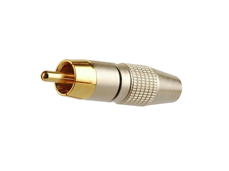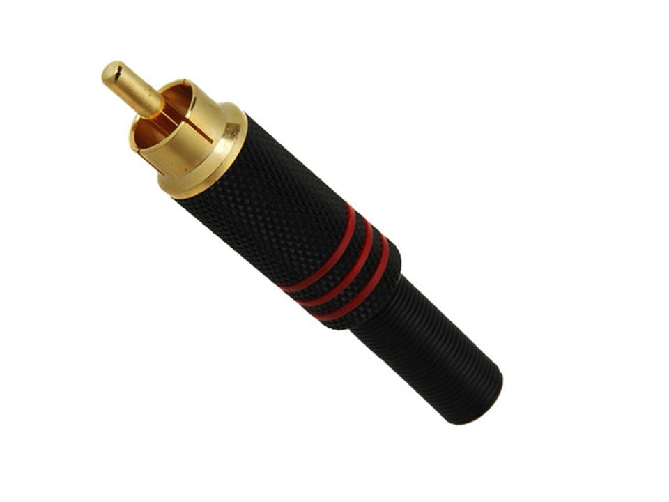 Złącze RCA KaCsa RP-50GT-6 to wtyk RCA przeznaczony do przewodów o średnicy zewnętrznej do 6 mm. Pin centralny wykonany z mosiądzu i pokryty 24-karatowym złotem, co poprawia przewodność oraz zabezpiecza przed korozją w długim okresie eksploatacji. Konstrukcja nie zawiera kodowania kolorystycznego, dzięki czemu idealnie nadaje się do indywidualnych projektów wymagających spójnej estetyki lub nadania kodu kolorystycznego samodzielnie. Montaż przewodu odbywa się metodą lutowaną.